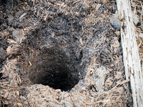 - Bước 1: Trước khi tiến hành trồng cây vào hố thì đảo phân từ trên xuống dưới, và từ ngoài vào trong cần được thực hiện ở vị trí đều khắp trong lòng hố.